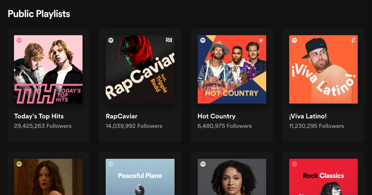 As for playlists you can take a look at Spotify's official profile and browse for playlists of your musical style.